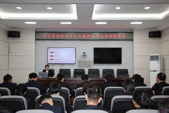 12月6日,学习贯彻党的十九大精神区委宣讲团来到金山屯区人民检察院,院党组高度重视此次活动,组织全体干警听取了由区委党校副校长王彦荣对十九大报告的深刻解读。